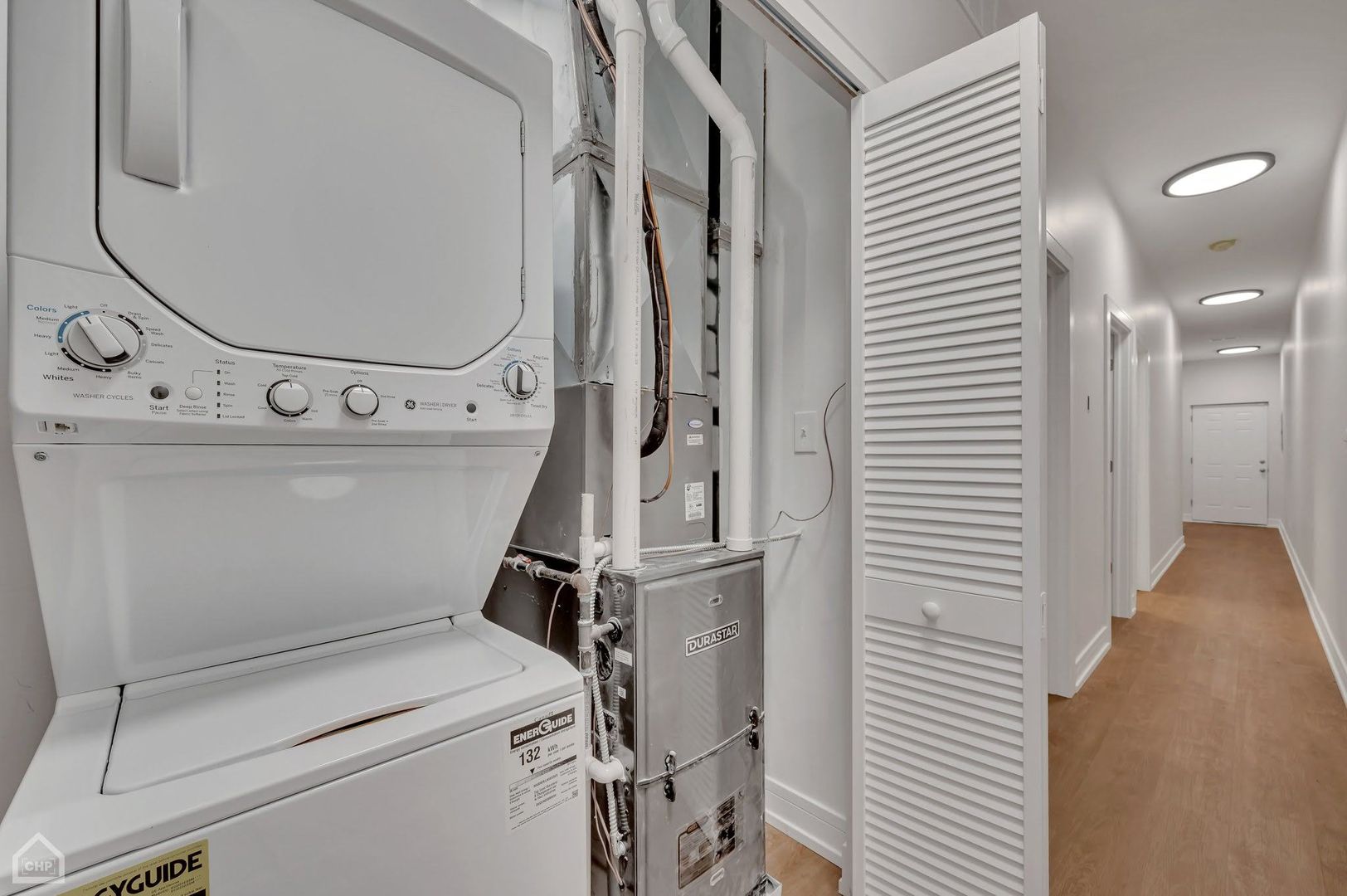 Additional highlights include a high-efficiency furnace, tankless water heater, in-unit washer and dryer, private rear terrace, smart intercom system, and secure entry. Garage parking is included.